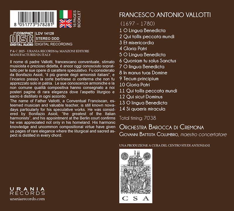 フランチェスコ・アントニオ・ヴァロッティ:モテッツ・アントニアニシプルーニ:チェロ・ソナタOP.私( LDV 14128 )